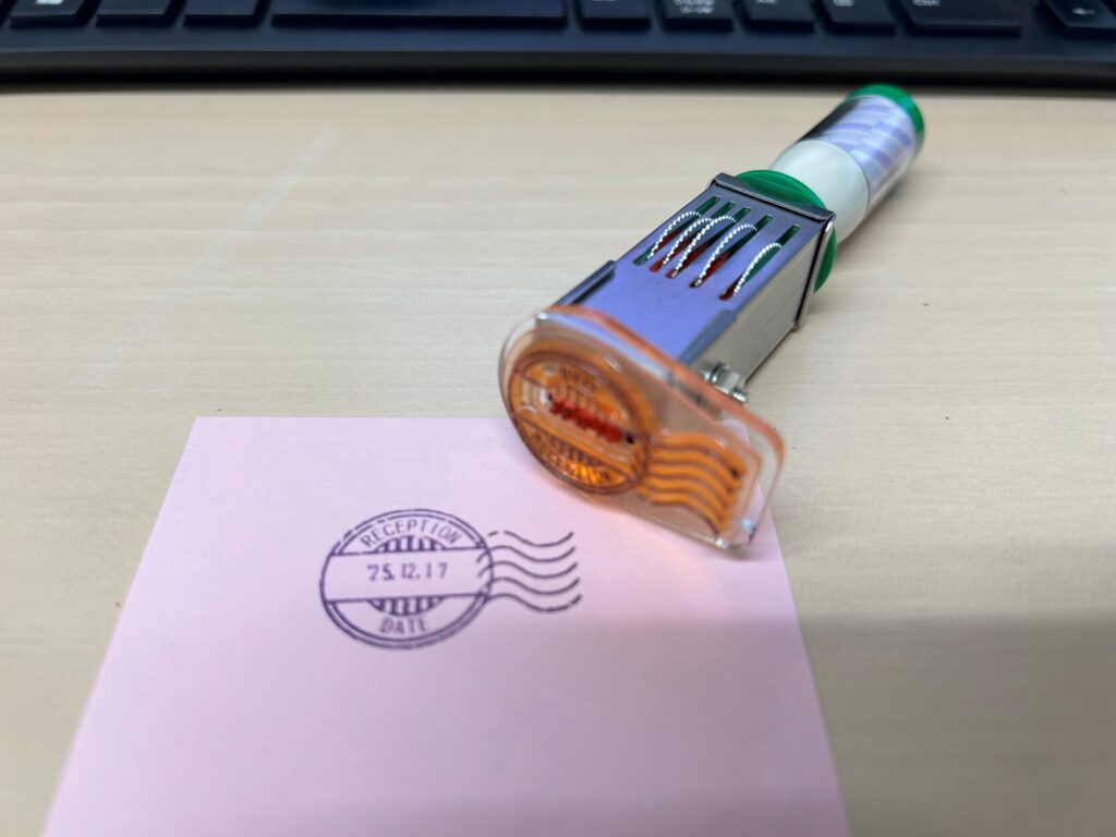 そしてようやく意を決して購入したのは文字入れセミオーダーの消印デザイン日付スタンプ。